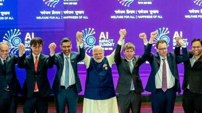 एआई समिट में हुए हंगामे के विरोध में भाजपा का प्रदर्शन