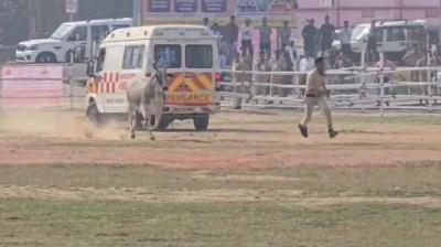 सीएम नीतिश के आगमन के पहले हेलीपैड के अंदर घुस गया सांड..........फिर हुआ क्या