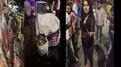 एक्टिवा सवार युवकों को टक्कर मार रशियन लड़की ने बिच सड़क मचाया बवाल, पुलिस से भी की बदसलूकी