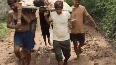 बीमार को अस्पताल ले जाने के लिए सड़क नहीं मिली, इंसानियत ने रास्ता बनाया – खाट पर 2 किलोमीटर चले गांव वाले