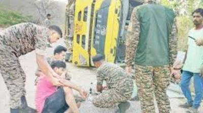 तेज रफ्तार का कहर: पुसपाल घाट में हाइवा दुर्घटनाग्रस्त, चालक सहित तीन लोग घायल