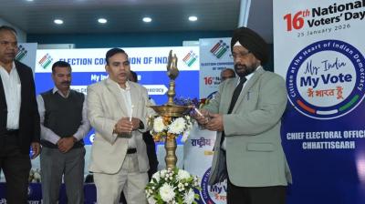 रायपुर : 16वें राष्ट्रीय मतदाता दिवस के अवसर पर संचालनालय, स्वास्थ्य सेवाएं, नवा रायपुर परिसर में गरिमामय कार्यक्रम का आयोजन किया गया। इस अवसर पर परिसर लोकतांत्रिक मूल्यों, मतदान के...