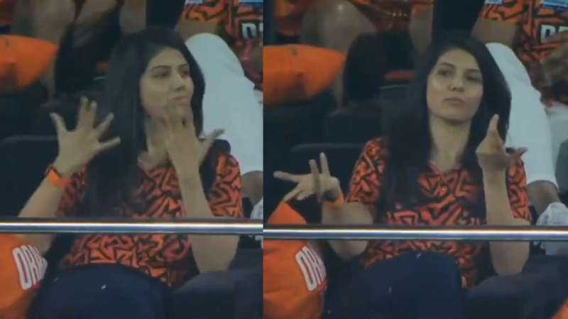 गुजरात टाइटंस के खिलाफ पहले बल्लेबाजी करते हुए सनराइजर्स हैदराबाद ने पहला विकेट पहले ही ओवर में गंवा दिया, ट्रेविस हेड 8 के स्कोर पर चलते बने. इसके बाद पांचवे ओवर में अभिषेक शर्मा 18 रन बनाकर आउट हो गए, दोनों को मोहम्मद सिराज ने अपना शिकार बनाया. पहले मैच में शतक जड़ने वाले ईशान किशन एक बार फिर फ्लॉप हो गए, वह 17 रन बनाकर प्रसिद्ध कृष्णा की गेंद पर कैच आउट हुए. स्टैंड में बैठी टीम की मालकिन काव्या मारन हर विकेट के साथ गुस्से में लाल हो रही थी, उनके हाथों के रिएक्शन बता रहे थे कि वह कितने गुस्से में हैं. उनके रिएक्शन सोशल मीडिया पर वायरल हो रहे हैं.