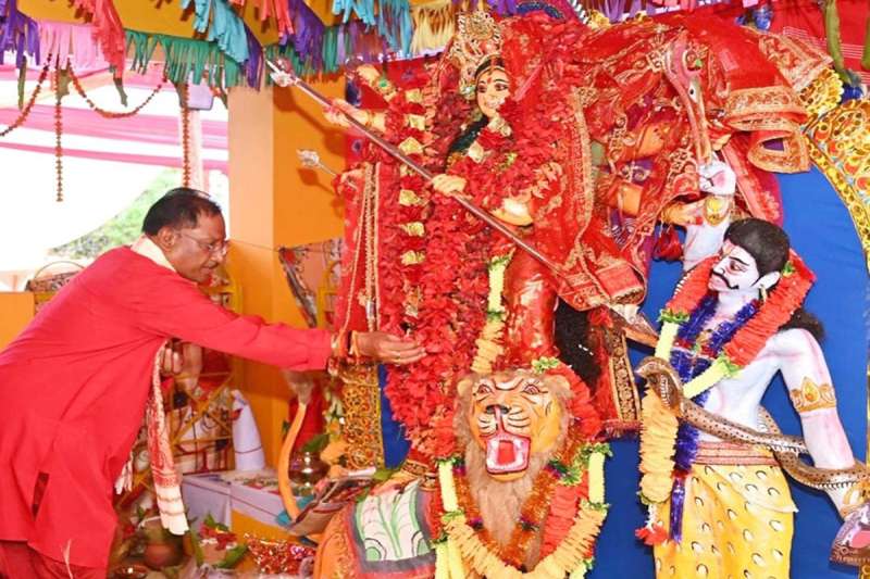 रायपुर: मुख्यमंत्री विष्णु देव साय ने आज जशपुर जिले के बगिया गांव स्थित दुर्गा मंदिर में देवी दुर्गा की पूजा-अर्चना की। इस पावन अवसर पर उन्होंने अपनी धर्मपत्नी श्रीमती कौशल्या साय और परिवार के सदस्यों के साथ देवी की विधिवत पूजा-अर्चना की और प्रदेशवासियों की सुख, समृद्धि और खुशहाली की कामना की। मुख्यमंत्री विष्णु देव साय और श्रीमती कौशल्या साय ने इस अवसर पर पारंपरिक श्रद्धा और स्नेह के साथ छोटी-छोटी कन्याओं को आदरपूर्वक भोजन कराया और उनका आशीर्वाद प्राप्त किया।