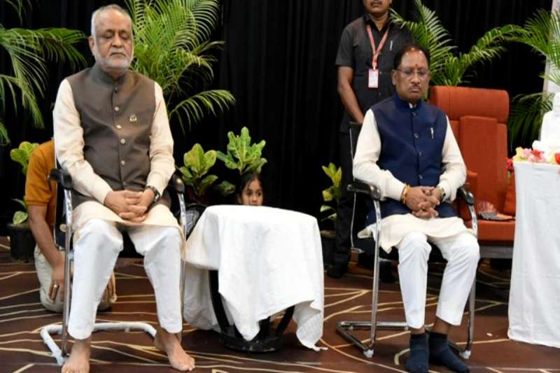 रायपुर: मुख्यमंत्री विष्णु देव साय आज दुर्ग जिले के अमलेश्वर स्थित हार्टफुलनेस योग आश्रम पहुंचे, जहां उन्होंने विश्वप्रसिद्ध योगगुरु कमलेश पटेल से सौजन्य मुलाकात की। मुख्यमंत्री ने योगगुरु को शॉल भेंट कर उनका सम्मान किया और योग एवं ध्यान के माध्यम से मानसिक और शारीरिक स्वास्थ्य पर पड़ने वाले सकारात्मक प्रभावों पर विस्तार से चर्चा की। मुख्यमंत्री साय ने इस दौरान ‘मनोयोग’ कार्यक्रम में भी सहभागिता की और आम नागरिकों के साथ आधे घंटे तक मौन योग (मेडिटेटिव साइलेंस) का अभ्यास किया। उन्होंने कहा कि आधुनिक जीवन की भागदौड़ में मानसिक शांति अत्यंत आवश्यक है और योग-ध्यान इस दिशा में अत्यंत प्रभावी माध्यम है।