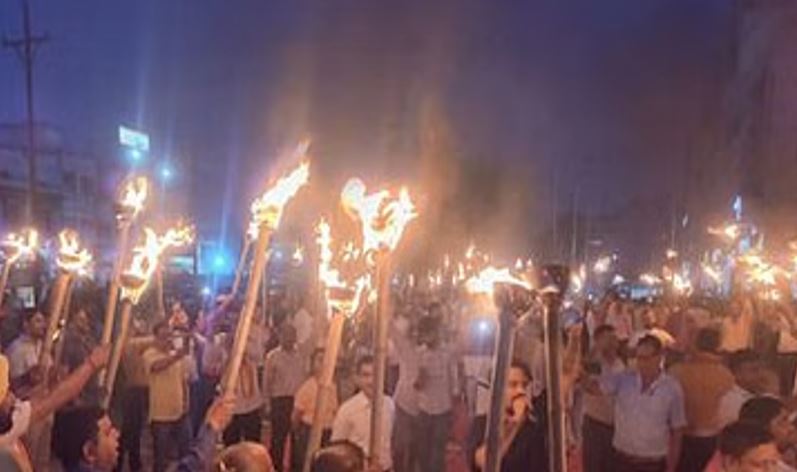 लोगों ने जानकी मंदिर परिसर से जनक चौक तक आतंकवाद मुर्दाबाद, आतंकियों का सफाया हो के नारे लगाए। इसके बाद हमले में मृत सभी सैलानियों को दीप जलाकर श्रद्धांजलि दी। आतंकियों का पुतला दहन किया।