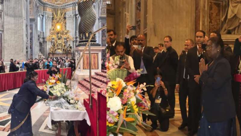 राष्ट्रपति की यात्रा के बारे में जानकारी देते हुए विदेश मंत्रालय के प्रवक्ता रणधीर जायसवाल ने तस्वीरें शेयर करते हुए एक्स पर लिखा, राष्ट्रपति द्रौपदी मुर्मू ने वेटिकन सिटी में सेंट पीटर बेसिलिका में परम पावन पोप फ्रांसिस को श्रद्धांजलि दी.