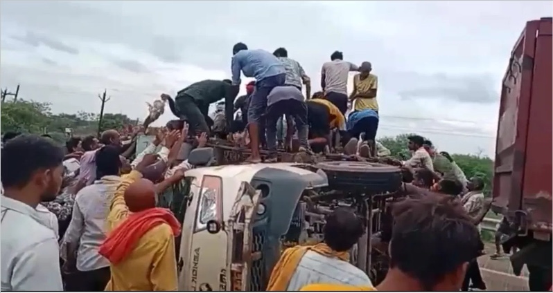 पलटी गाड़ी, सड़क पर तड़पता ड्राइवर और लोग मुर्गियां बटोरते रहे