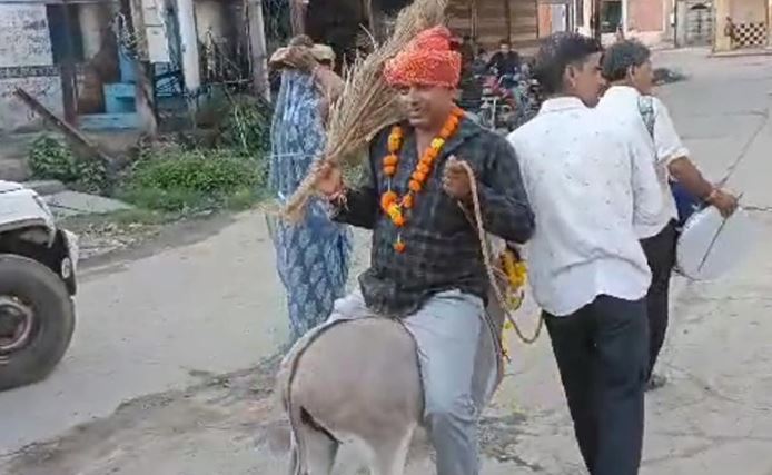 गधे पर उल्टा बैठाकर कराई परिक्रमा