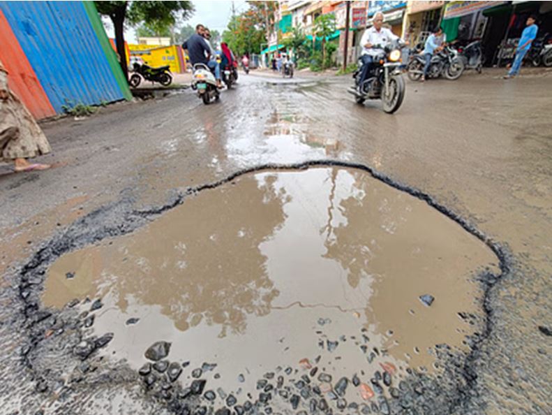 इंदौर में बारिश के बाद सड़कें हुईं बदहाल, जगह-जगह धंसकने लगे रास्ते