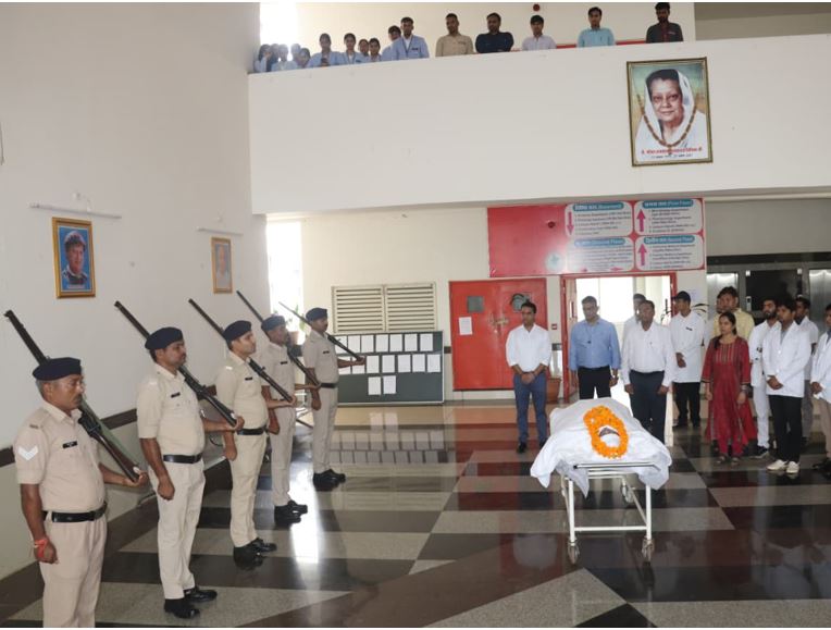 मध्यप्रदेश शासन ने देहदान करने वालों को राजकीय सम्मान देने का आदेश दिया है। इसके चलते दिवंगत सरोज को शिवपुरी एसपी अमन सिंह राठौड़ के निर्देशन में पुलिस फोर्स ने गार्ड ऑफ ऑनर देकर श्रद्धांजलि अर्पित की। वहीं, शिवपुरी मेडिकल कॉलेज के इतिहास में यह पहला अवसर रहा, जब किसी मृत देह को राजकीय सम्मान मिला। मेडिकल कॉलेज के कई डॉक्टर्स सहित एमबीबीएस स्टूडेंट्स और कर्मचारियों ने पार्थिव देह को सम्मानपूर्वक ग्रहण किया।