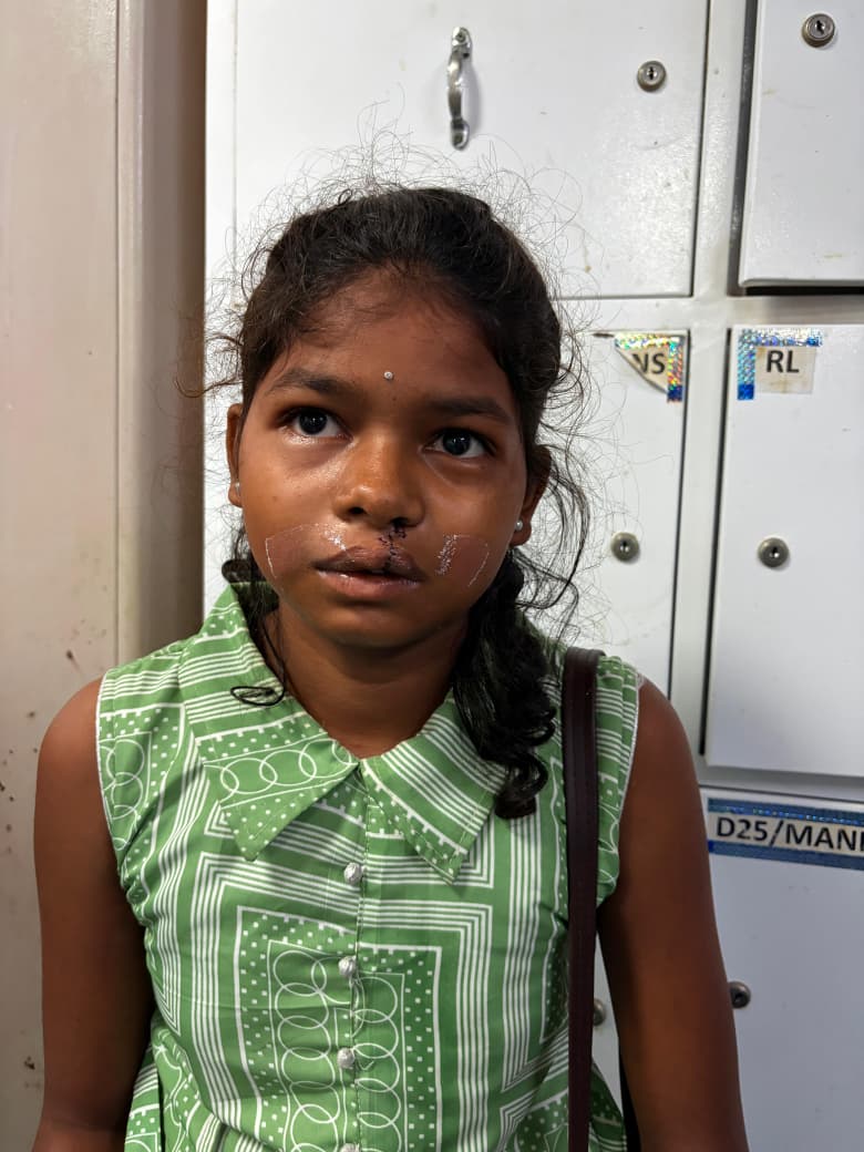 लावण्या, जो कन्या आश्रम, गोल्लापल्ली (पालाचेलमा) की निवासी है, जन्म से ही क्लैफ्ट लिप (कटे होंठ) जैसी गंभीर समस्या से जूझ रही थी। यह बीमारी सिर्फ शारीरिक दर्द तक सीमित नहीं थी, बल्कि उसके बचपन पर सामाजिक झिझक और आत्मविश्वास की कमी का भी गहरा असर डाल रही थी। परिवार में जागरूकता की कमी और इलाज को लेकर भय के कारण लंबे समय तक उसका उपचार नहीं हो पाया। लेकिन किस्मत ने तब करवट ली जब लावण्या मेगा सुपर स्पेशियलिटी स्वास्थ्य शिविर में पहुंची। शिविर में कलेक्टर श्री अमित कुमार और एसपी श्री किरण चव्हाण से मिली। उन्होंने लावण्या को स्वास्थ्य शिविर में जांच कराके बेहतर इलाज का प्रबंध किया।