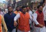 नगर निगम पर प्रदर्शन, बैरिकेडिंग के बीच कार्यकर्ताओं ने किया हनुमान चालीसा का पाठ