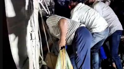 ट्राला दुर्घटनाग्रस्त होते ही शराब की लूट, रोकने गई पुलिस टीम पर बरसे पत्थर